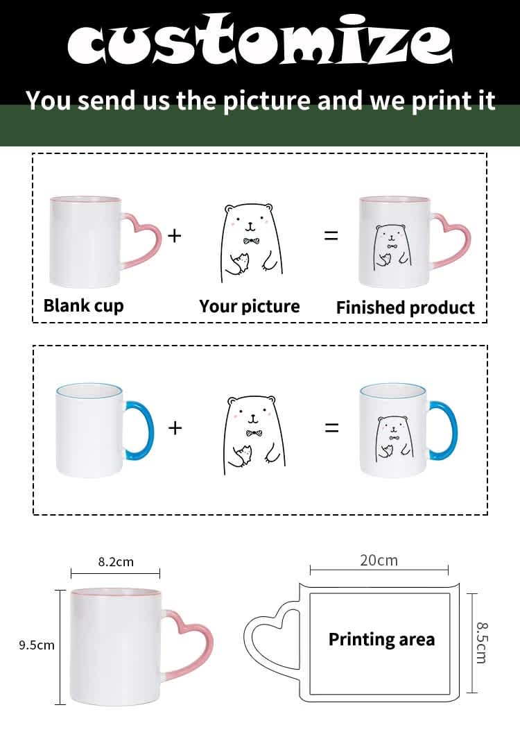 The maximum printing size of the cup is: width 20cm, height 8.5cm. It can be printed within this range. The buyer sends the picture to us, and we will process the picture.